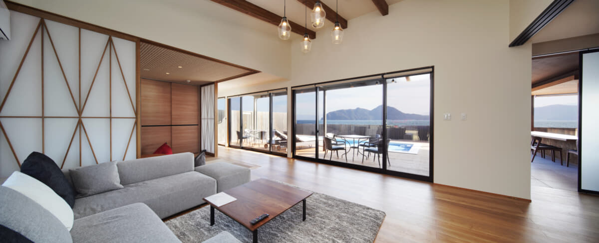 與化妝品品牌「MEZZO」合作的奢華海景別墅,正面可眺望日本海的壯麗景色。