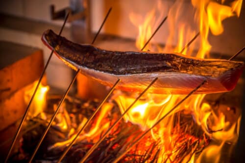 在充滿懷舊情趣的圍爐裏邊享用的「智慧之餅」,其特點是紅豆餡顏色較淺,但口感細膩且甜味十足。